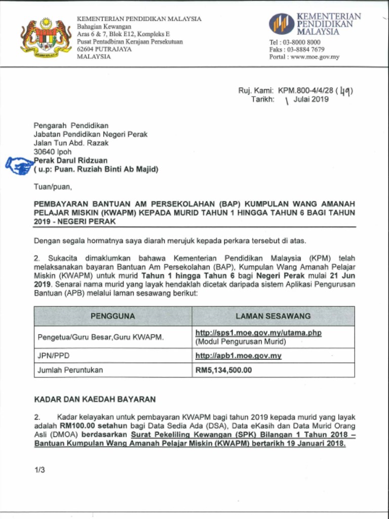 Surat Kpm Jpn Bayaran Kwapm D1 D6 Tahun 2019 Pdf